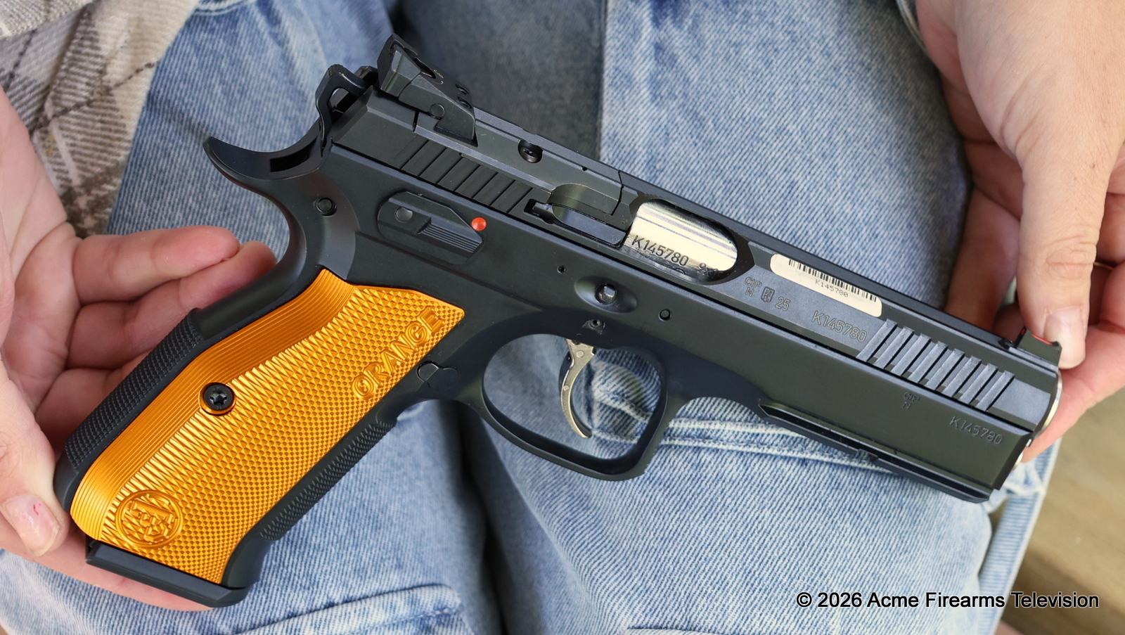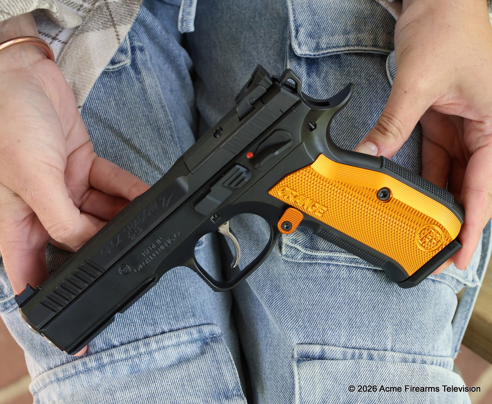 CZ 75 Shadow 2 Orange - 9mm Luger - 3 x 10 round magazines, 120mm barrel, carry case and instructions. Fibre Optic front sight and adjustable rear sight.
